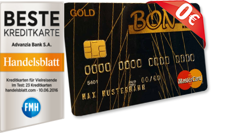 Die Bon-Kredit MasterCard GOLD ist für Sie absolut gebührenfrei und unabhängig von Ihrer Kreditanfrage.